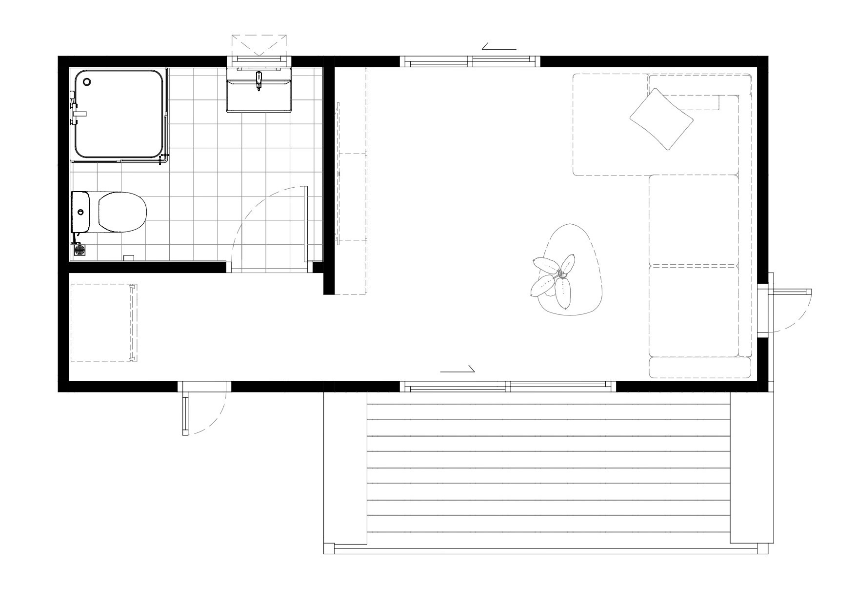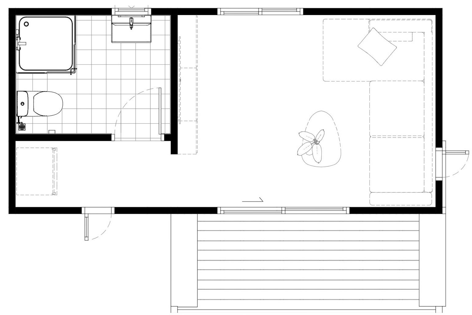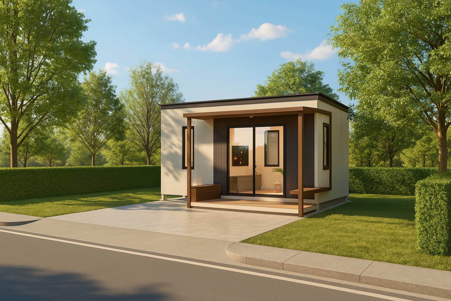 บ้านน็อคดาวน์สำเร็จรูป Monster M-B4 บ้านสไตล์โมเดิร์น ตอบโจทย์ทุกความต้องการของชีวิตทันสมัย รูปทรงสีเหลี่ยม 1 ห้องนอน , 1 ห้องนั่งเล่น , 1 ห้องน้ํา เน้นที่ความเรียบง่ายของรูปทรงและจัดพื้นที่ใช้สอยให้ได้ประโยชน์สูงสุด โทนสีแสดงถึงความสงบและสบายตา ไม่มีความฉูดฉาด ดูสุขุมมั่นคง สีขาว น้ําตาลลายไม่ ดูมีความเป็นเป็นธรรมชาติ มีระเบียงส่วนหน้าเป็นตัวเชื่อมภายนอกบ้านและภายใน