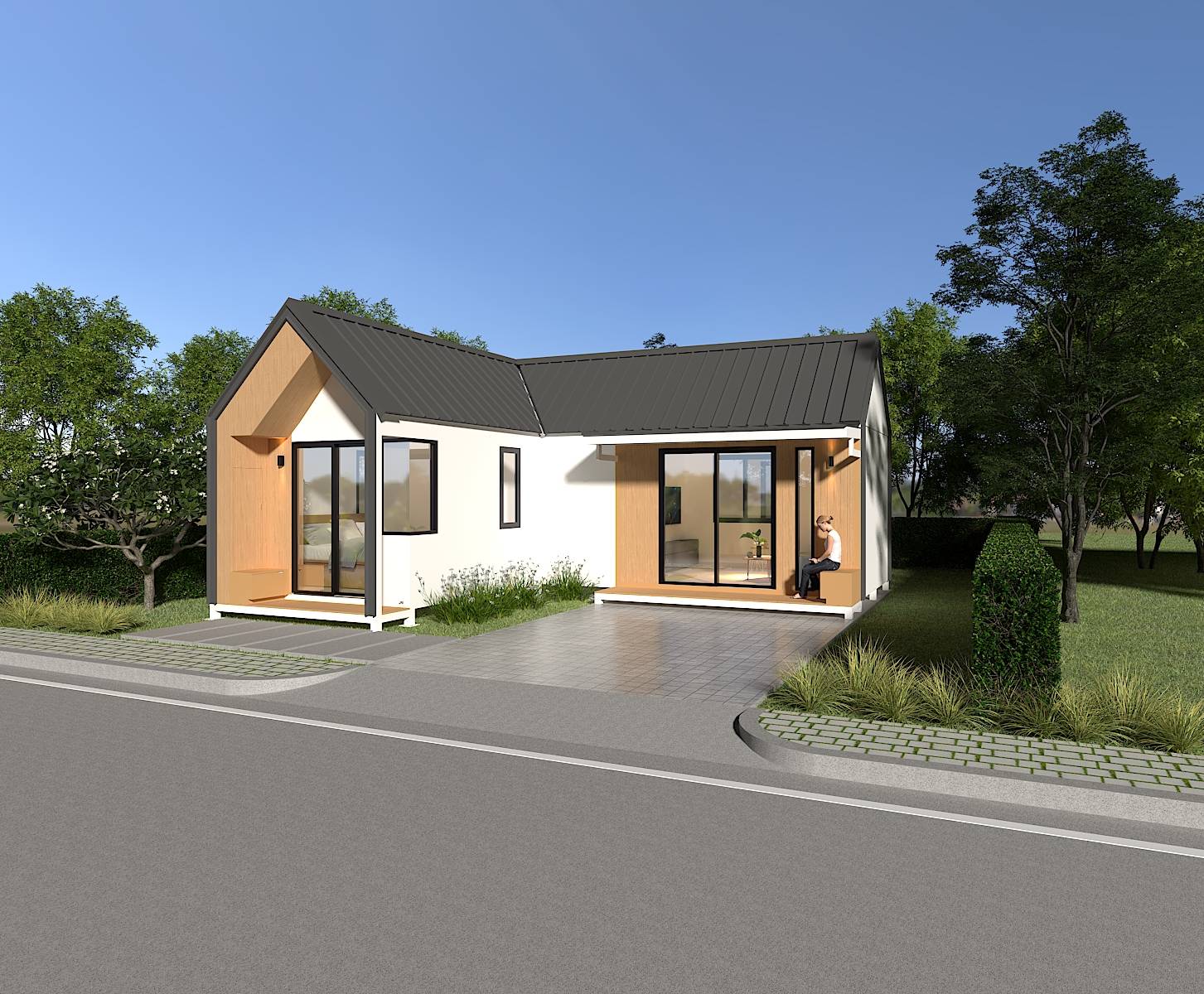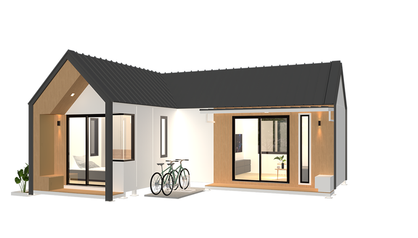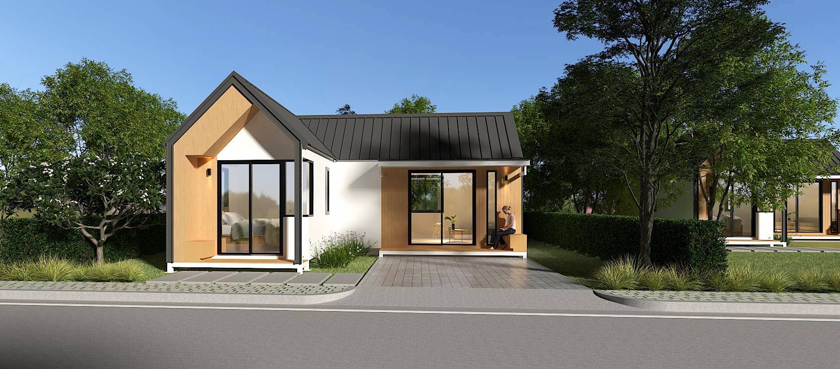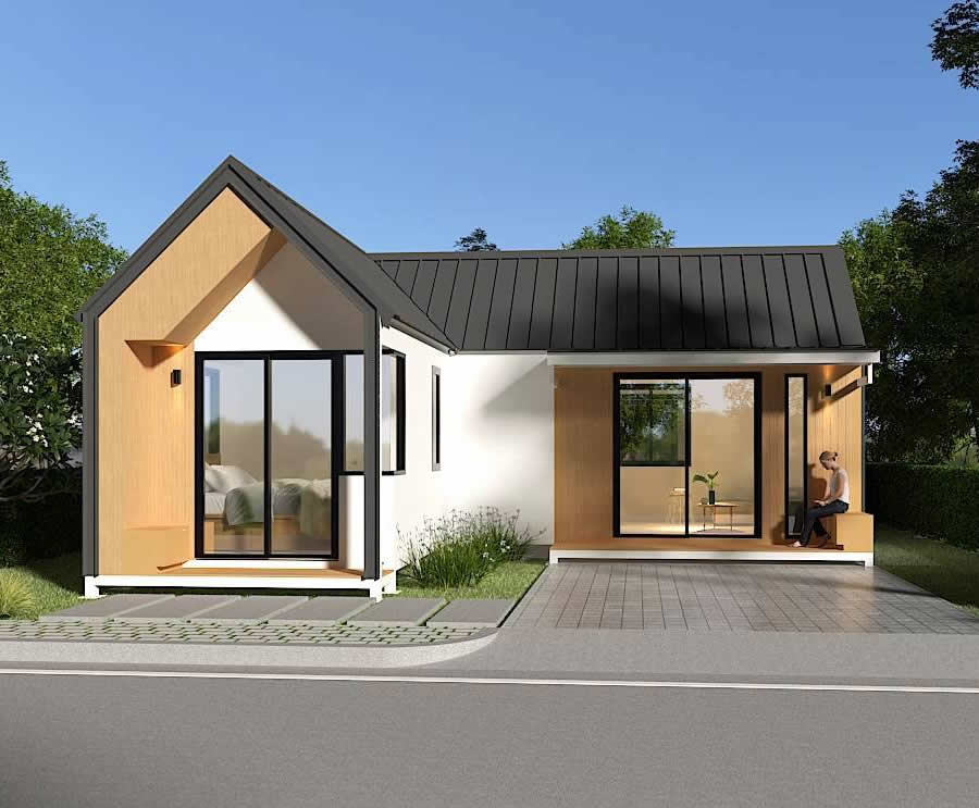 บ้านน็อคดาวน์สำเร็จรูป Monster M-B7 บ้านสไตล์โมเดิร์น ตอบโจทย์ทุกความต้องการของชีวิตทันสมัย บ้านโมเดิร์นมินิมอล 1 ห้องนอน , 1 นั่งเล่น , 1 ห้องน้ำ , 1ห้องครัว หลังคาทรงจั่ว ฝ้าสูง ระบายอากาศได้ดี โทนสีขาวและสีน้ำตาลลายไม้ ทำให้ดูมีความเป็นธรรมชาติและอบอุ่น สไตล์นี้เหมาะสำหรับผู้ที่ชื่นชอบความเรียบง่ายและสะดวกสบายในชีวิตประจำวัน